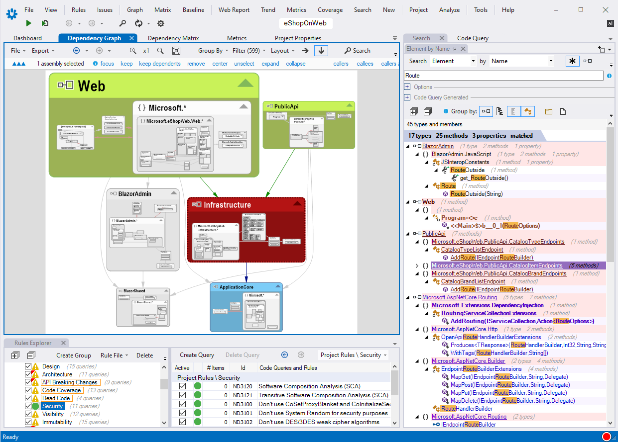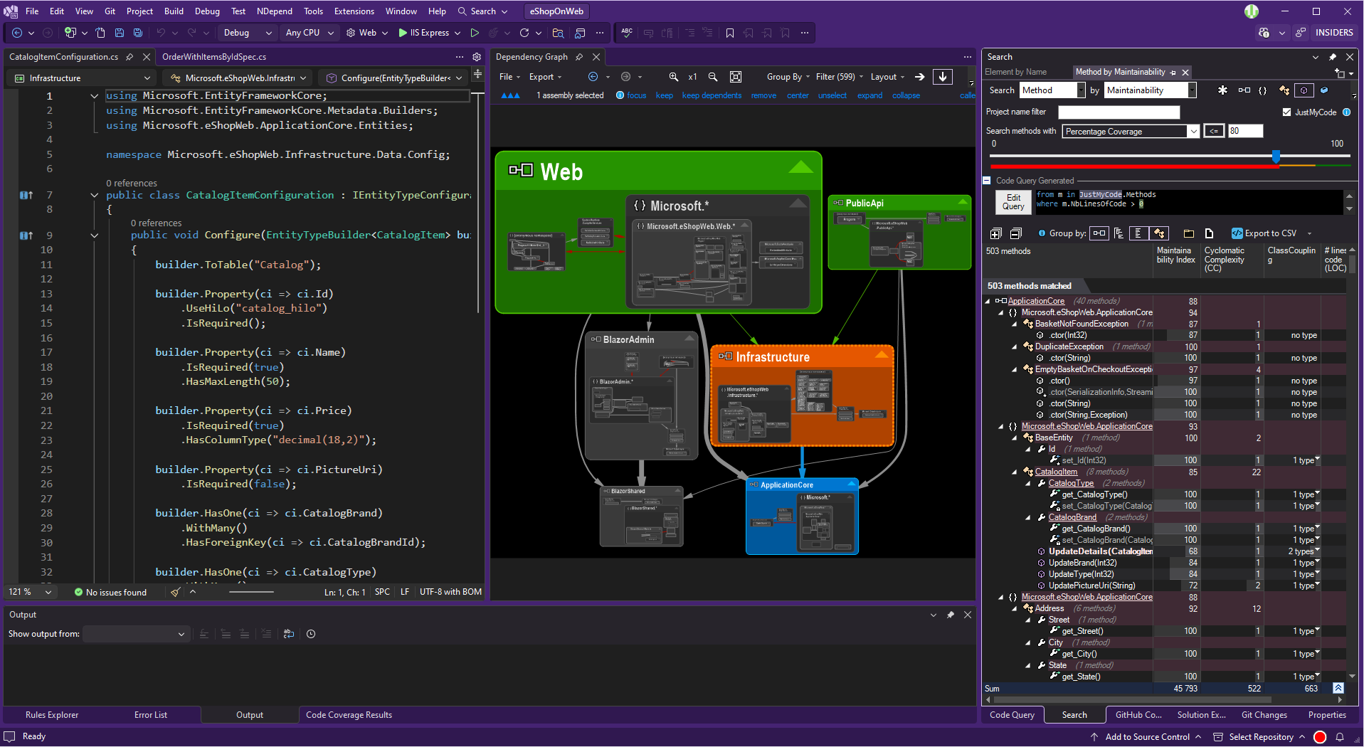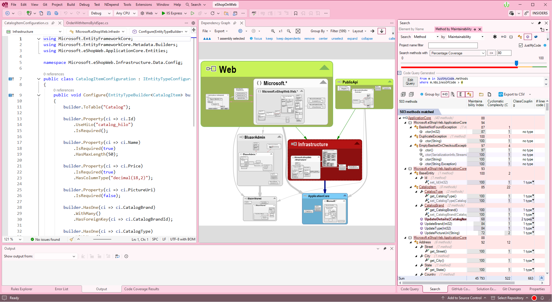 This dashboard is available in the NDepend UI in Visual Studio, in generated reports and in the Azure DevOps web portal.