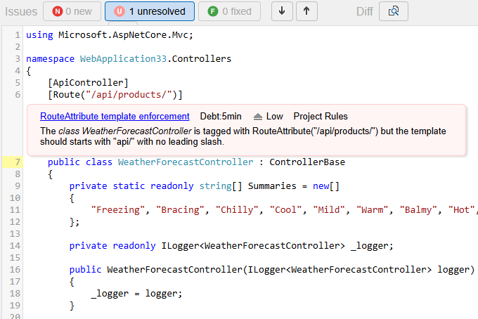 For each issue, now the Description and HowToFix texts of the parent rule are shown in the SonarQube interface.